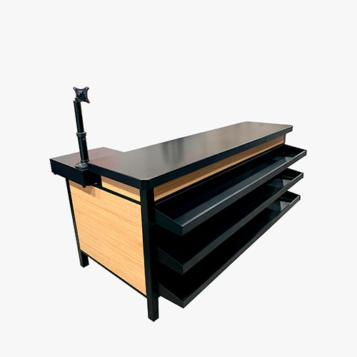 - Checkout com gaveta para dinheiro e bomboniere em 3 níveis.