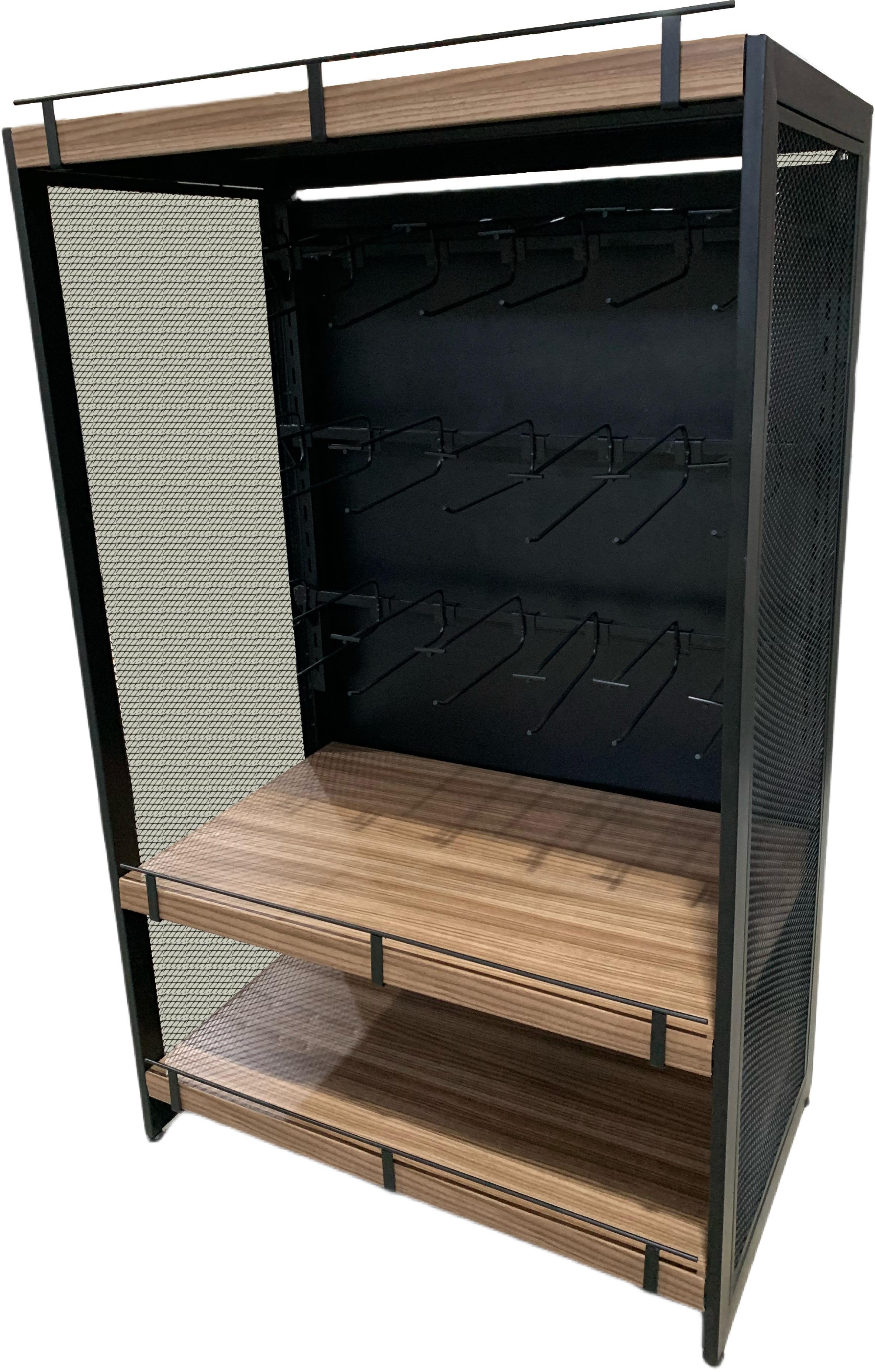 - Possui duas prateleiras inferiores com grade frontal para exposição de produtos.